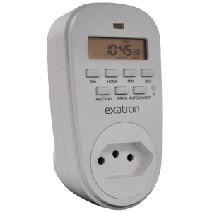 Conhecido como: Timer digital de tomada, Temporizador digital, Tomada com timer, Relógio digital para tomada, Relógio programável, Timer programável plug-in, Interruptor automático digital de tomada, Timer de 10A, Temporizador EXATRON, Timer LETM4003