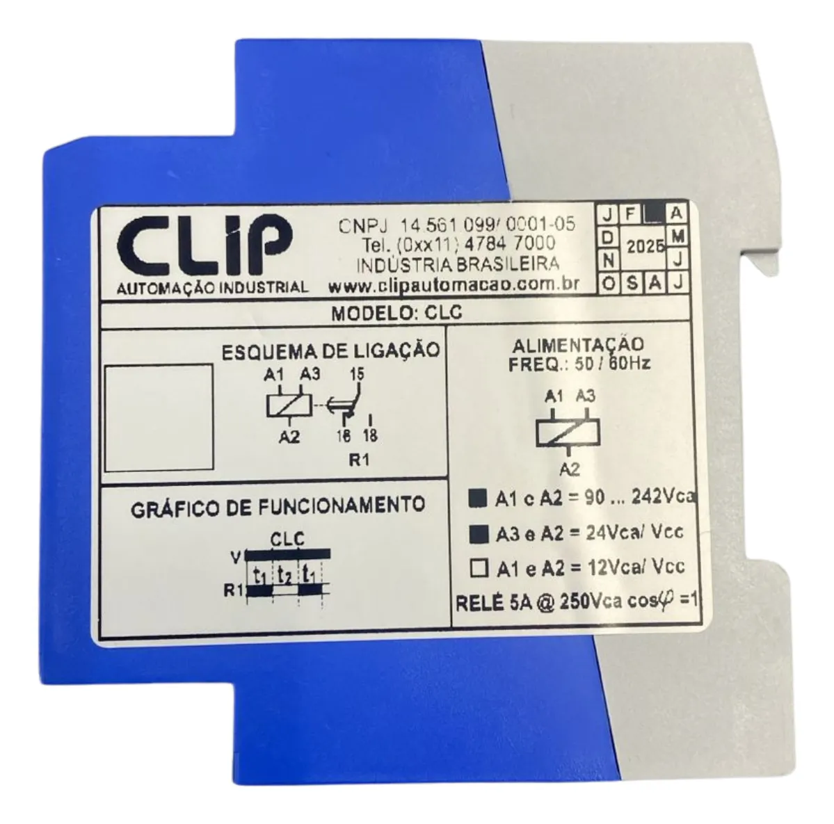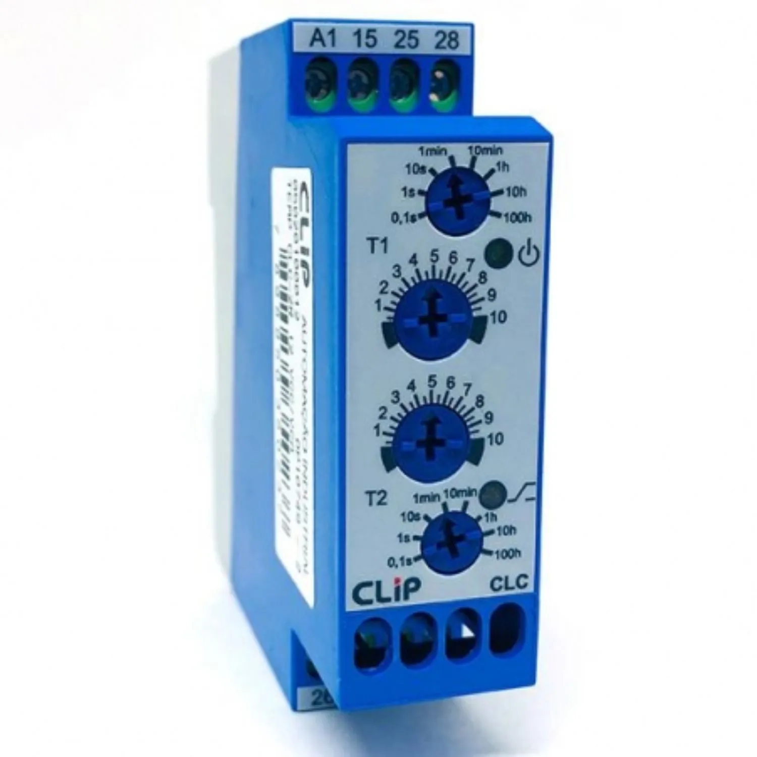 O temporizador cíclico 24-242 VCA/VCC CLC CLIP permite programar intervalos de operação repetitivos, alternando entre períodos de energização e desenergização da carga. É amplamente utilizado em sistemas de iluminação intermitente, sinalizações, testes de equipamentos, bombas, exaustores e aplicações onde se deseja operação sequencial automática.